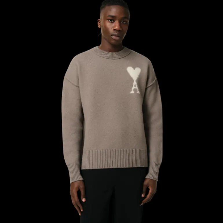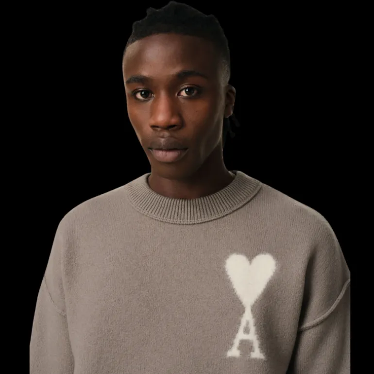 Logo Ami de Coeur texturé écru tricoté en intarsia sur la poitrine