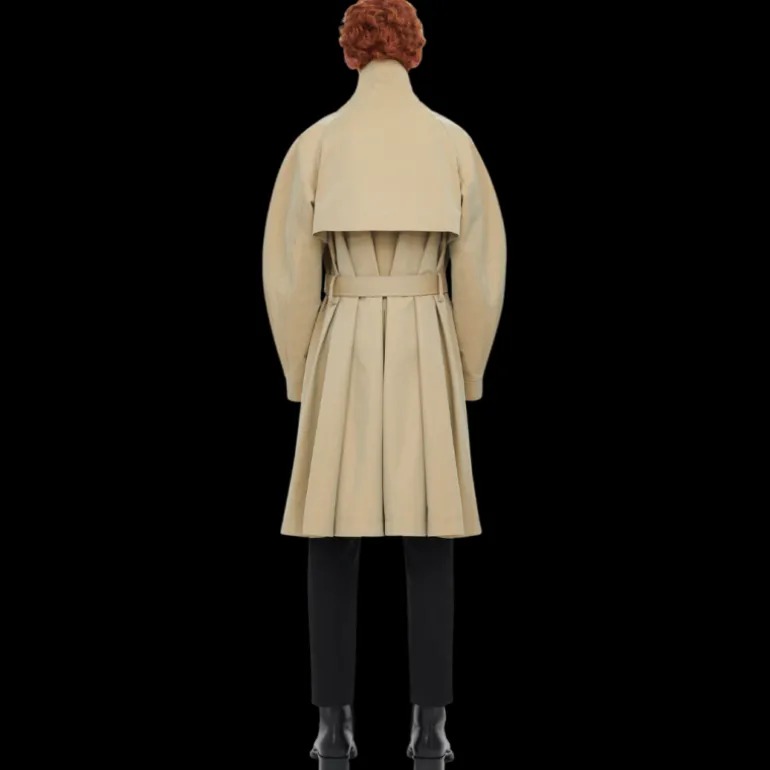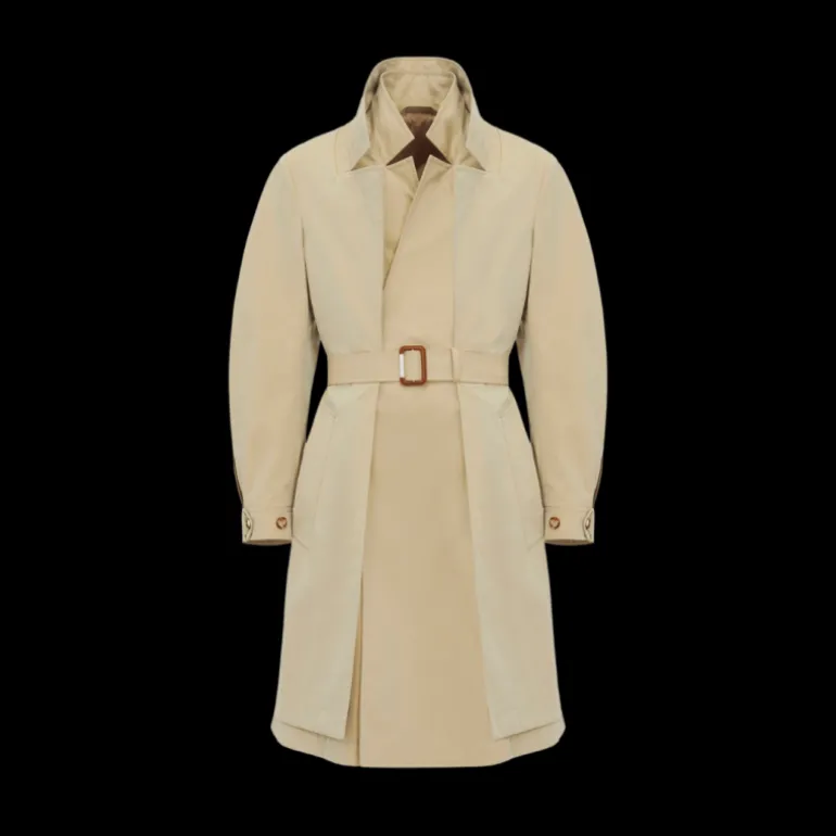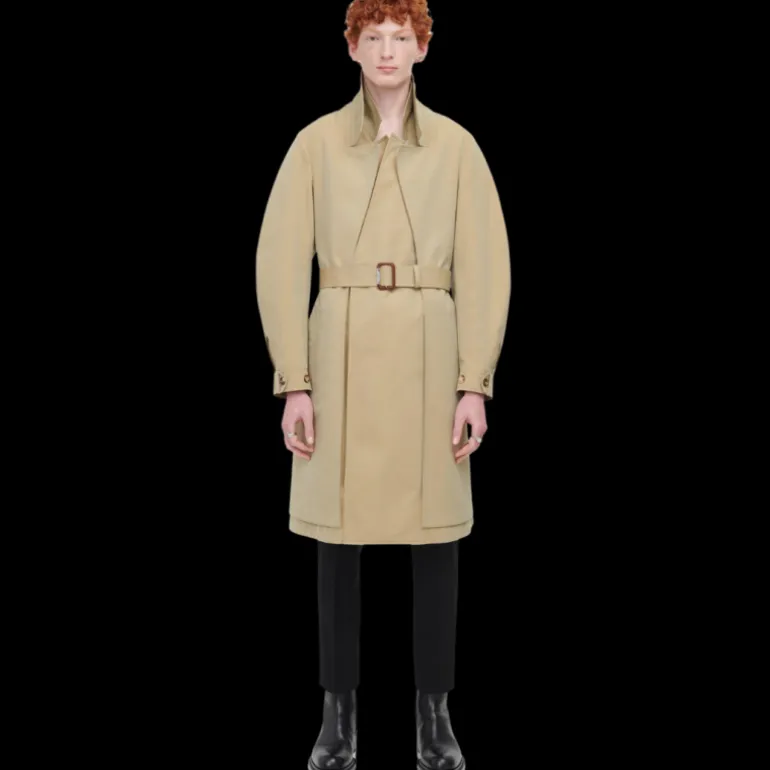 - Trench-coat reconstitué en gabardine de coton beige avec silhouette à superpositions