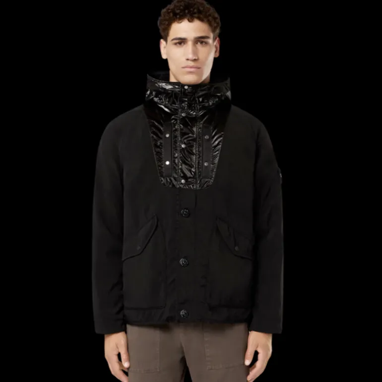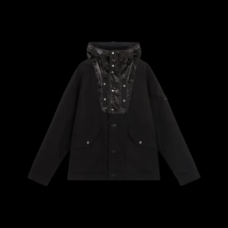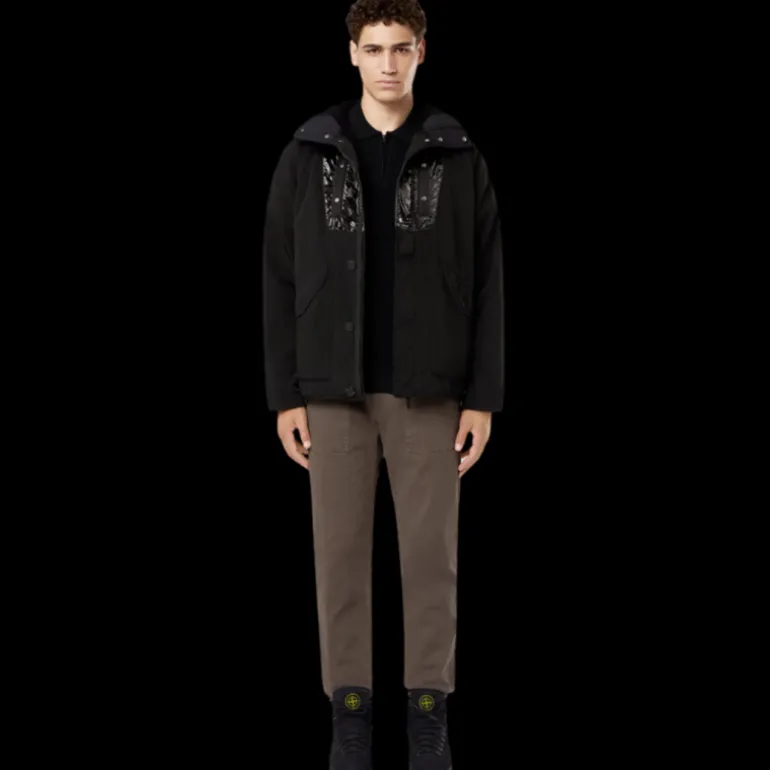 Capuche et appliqué sur la poitrine en New Silk Light, avec deux poches poitrine droites ornées d’une bande de nylon et fermées par bouton-pression. Manches raglan. Poches obliques à rabat avec fermeture à bouton-pression. Écusson Stone Island sur la manche gauche. Bouton de serrage aux poignets. Empiècement dans le bas du dos. Fermeture zippée à double curseur dissimulée par une patte de boutonnage.