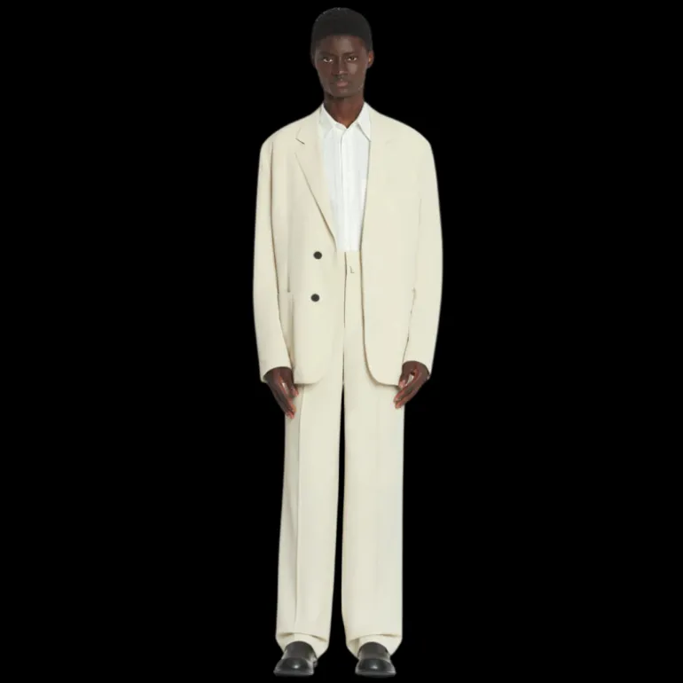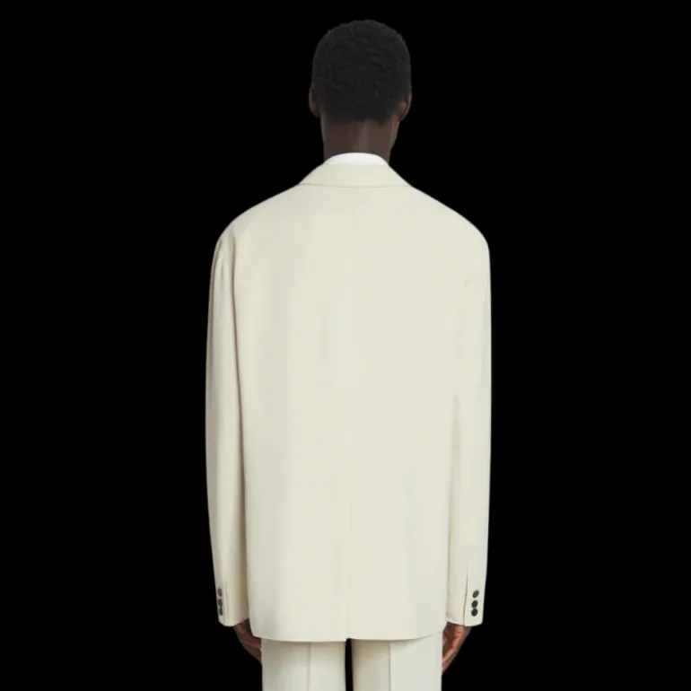 Veste ample laine mélangée écru mastic boutons cachés