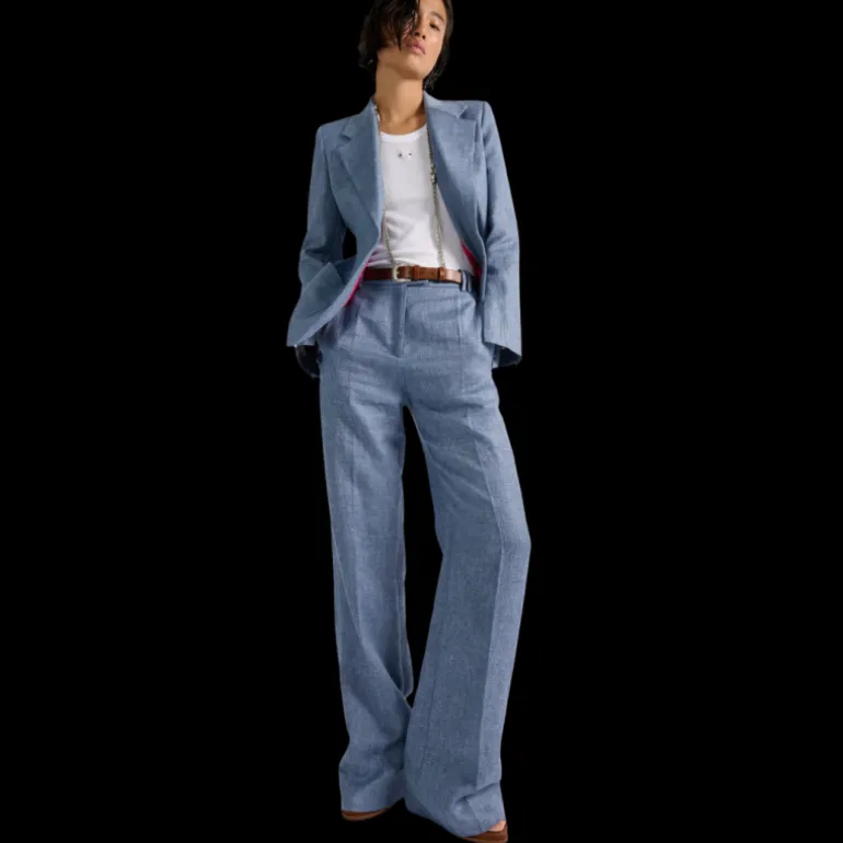 Veste de costume cintrée lin coton bleu jean manche fendue