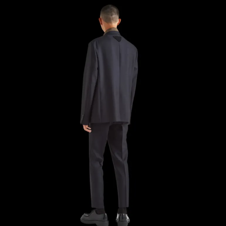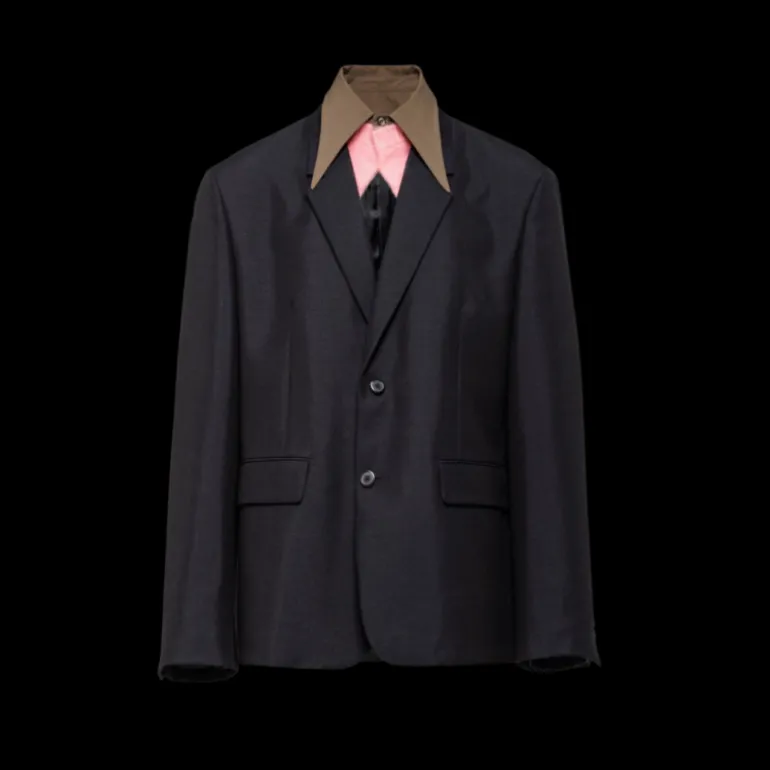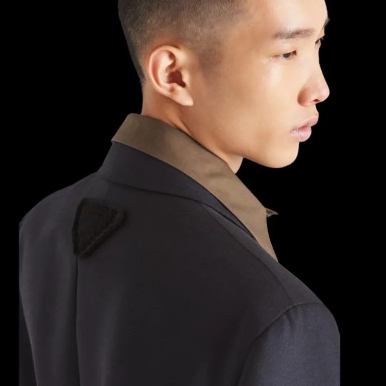 Cette veste est confectionnée en laine mohair douce. Elle affiche une coupe droite avec une fente d’aisance au dos, et dégage sophistication et caractère. Elle est ornée du logo triangulaire en tissu au dos.
