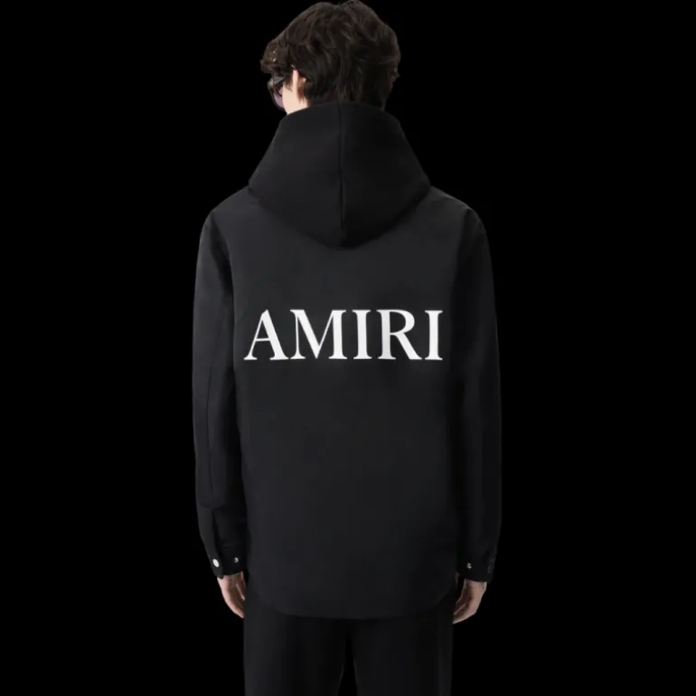 Veste surchemise bouton pression nylon noir logo MA Blanc