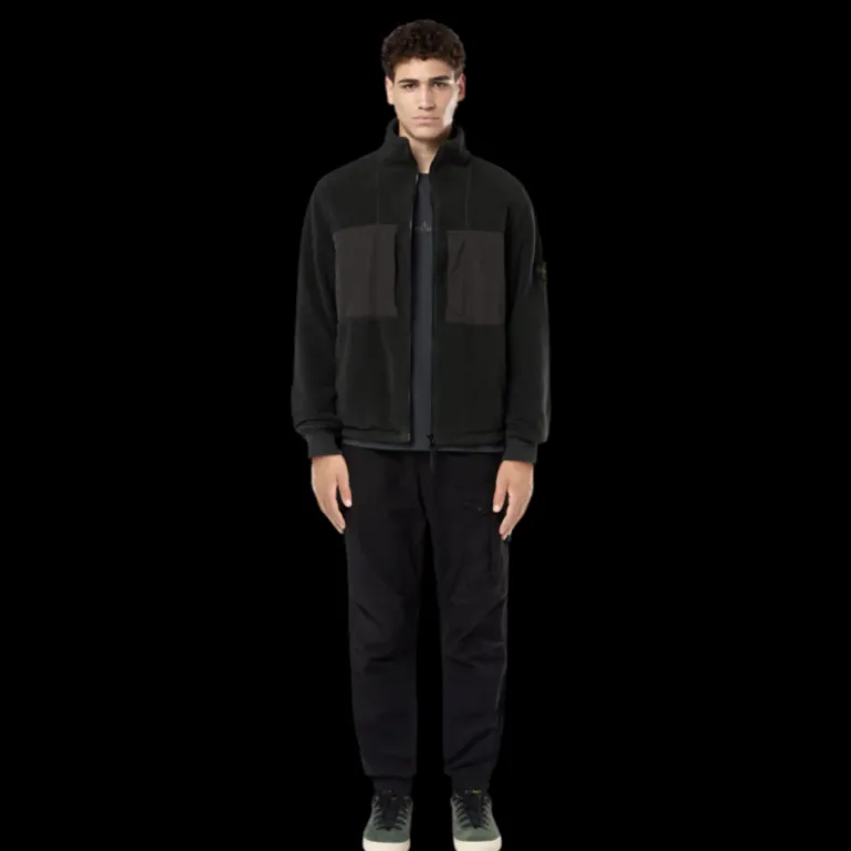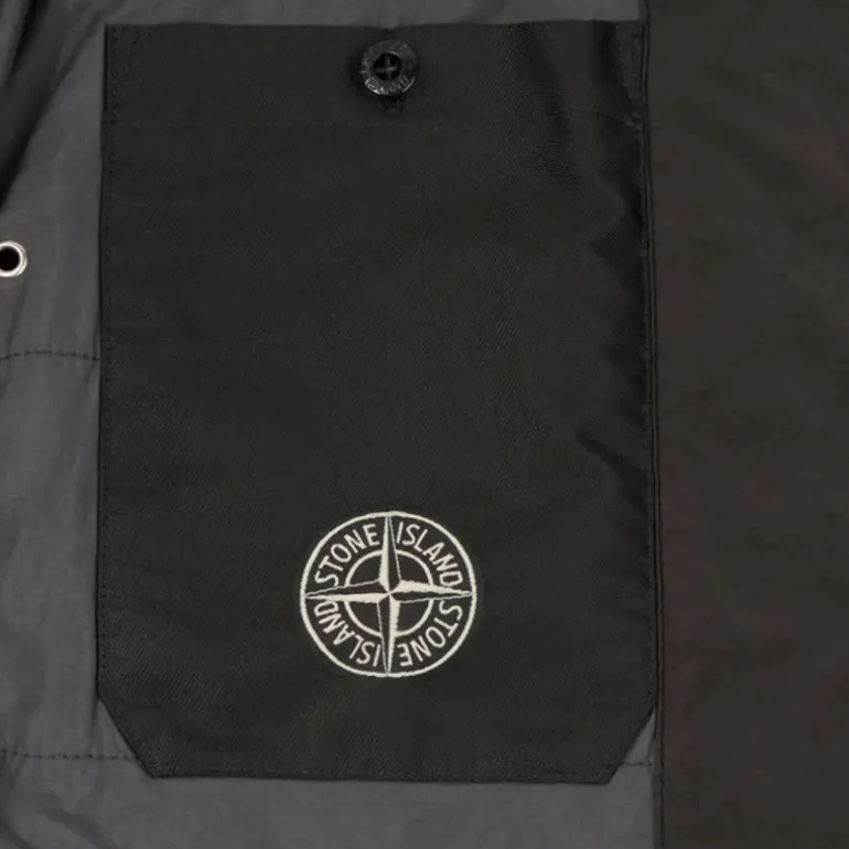 Col montant à cordon de serrage. Deux poches poitrine plaquées en toile de nylon avec fermeture zippée dissimulée droite. Écusson Stone Island sur la manche gauche. Grandes poches plaquées en toile de nylon sur les manches. Poignets côtelés. Cordon de serrage sur l’ourlet du bas. Fermeture zippée à double curseur.