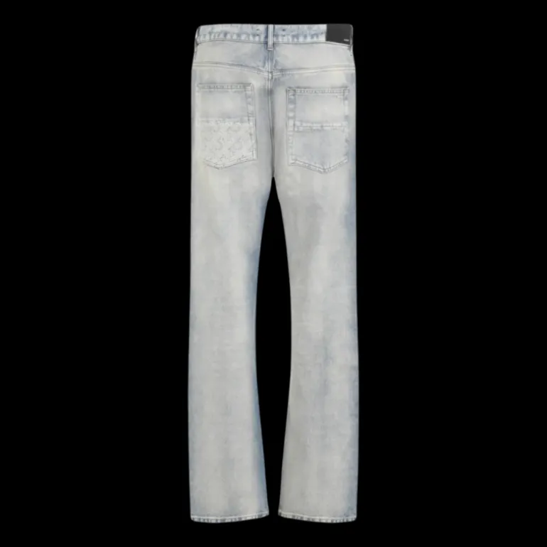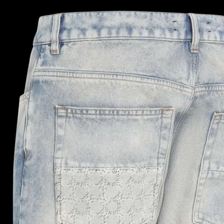 Jean droit MA Quad cuff denim bleu clair effet délavé multi logos