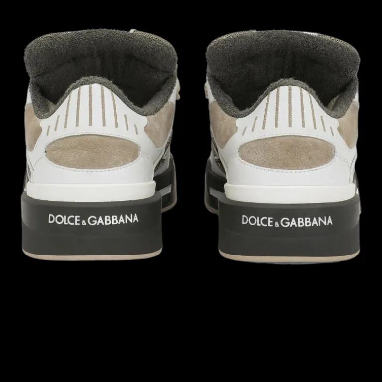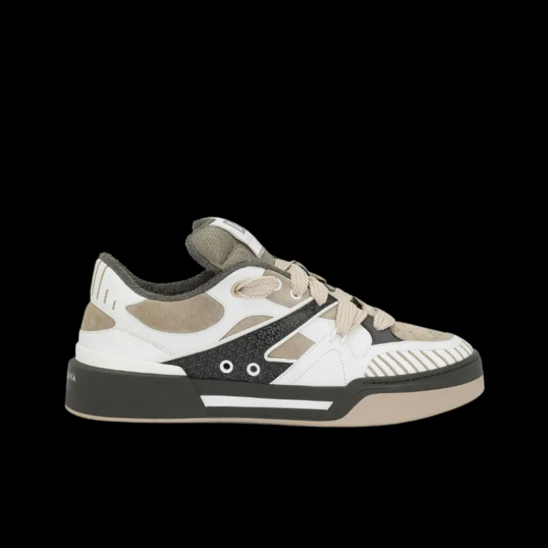 - Baskets New Roma en cuir de veau et daim avec empiècement griffé :