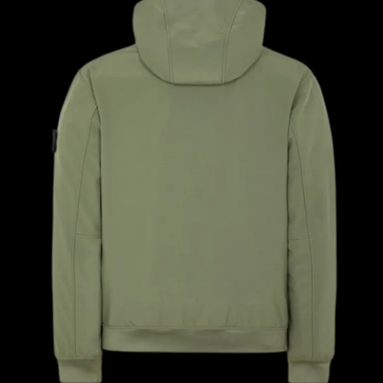 LIGHT SOFT SHELL-R_e.dye® TECHNOLOGY IN RECYCLED POLYESTER : Blouson à capuche réalisé à partir d’une matière technique et performante à triple couche résistant à une colonne d’eau de 8 000 mm. La face extérieure en toile élastique de polyester 100 % recyclé est tissée avec des fils obtenus avec la technologie e.dye® Waterless Color System™, un système innovant de saturation des couleurs à l’intérieur du fil. Il permet de réduire de 85 % l’utilisation d’eau et de 90 % les produits chimiques employés dans le procédé de teinture. Le tissu est associé à une membrane interne respirante, résistante à l’eau et au vent, et protégée par une couche en jersey de polyester texturé recyclé à 100 %. La structure externe de la matière offre une grande souplesse et un confort sans égal.