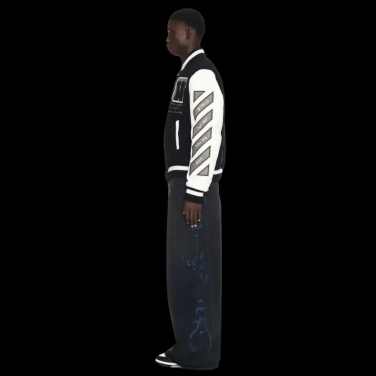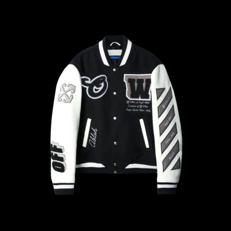 Faisant partie de Armoire, la sélection de basiques Off-White™, cette veste universitaire en laine mélangée présente des manches en cuir avec des patchs brodés et des détails côtelés classiques au col, à la taille et aux poignets. Coupe décontractée