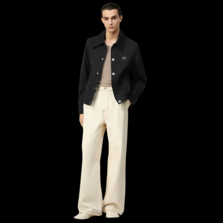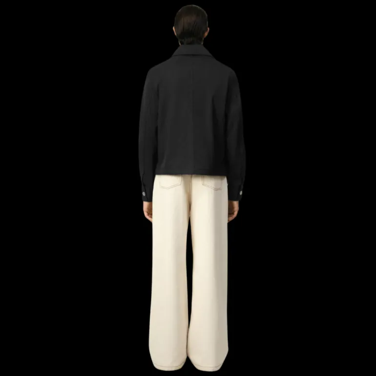 Blouson boutonné toile nylon noir col chemise poche poitrine logo