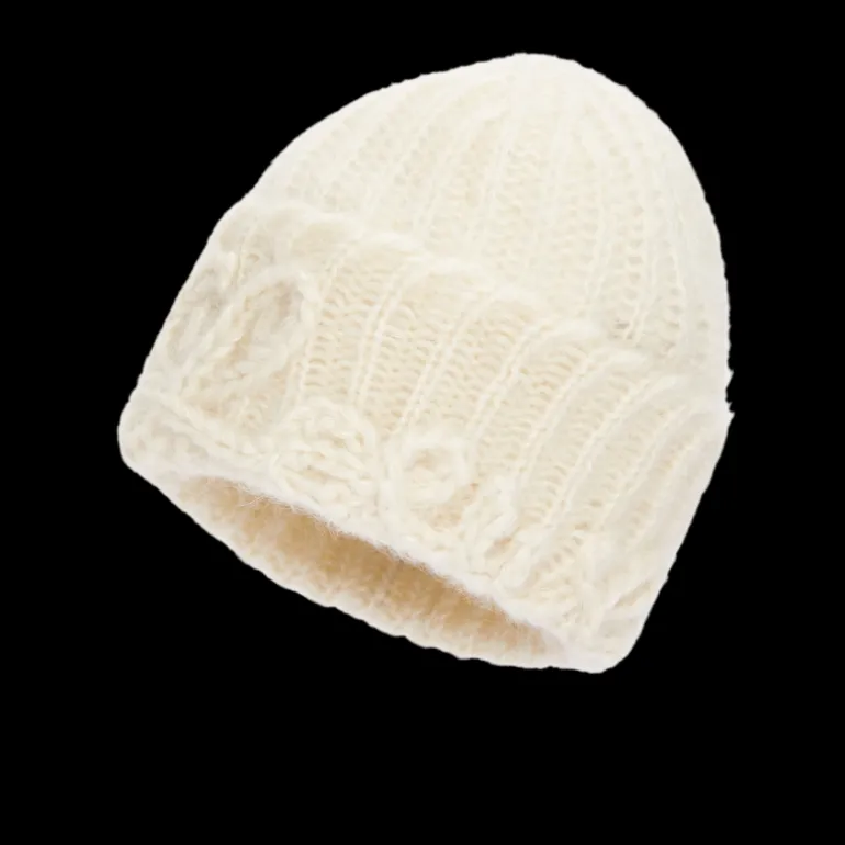 Bonnet grosse maille laine mohair melangé écru