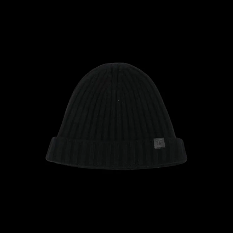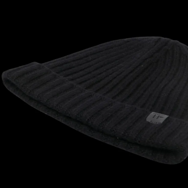Bonnet cachemire côtelé noir