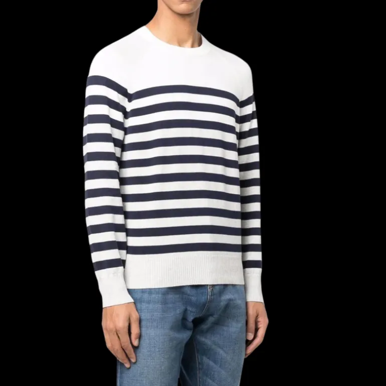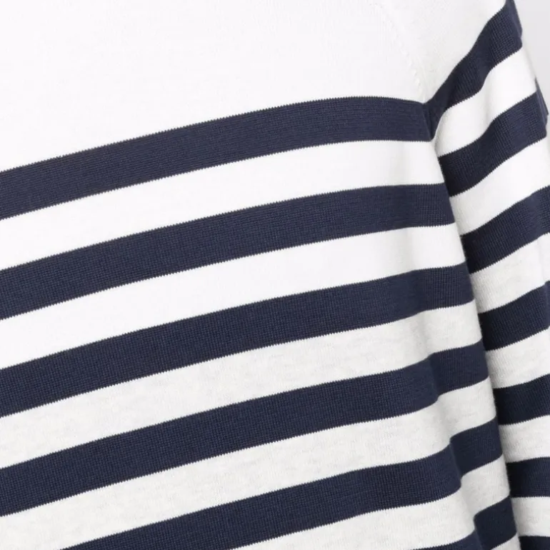 pull en maille coton blanc bleu rayures marinière