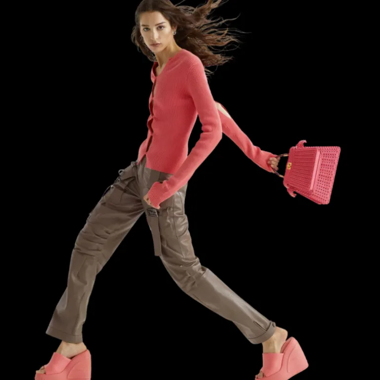 Cardigan manches longues coton côtelé rose pressions découpe