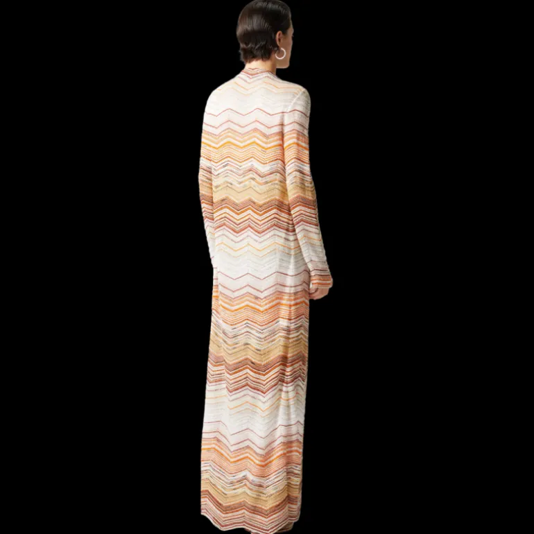 Cardigan long ceinture viscose lamé chevrons sequins dentelle orange