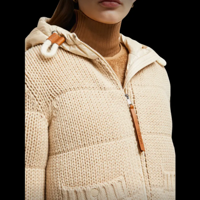 Cardigan zippé matelassé à capuche laine beige