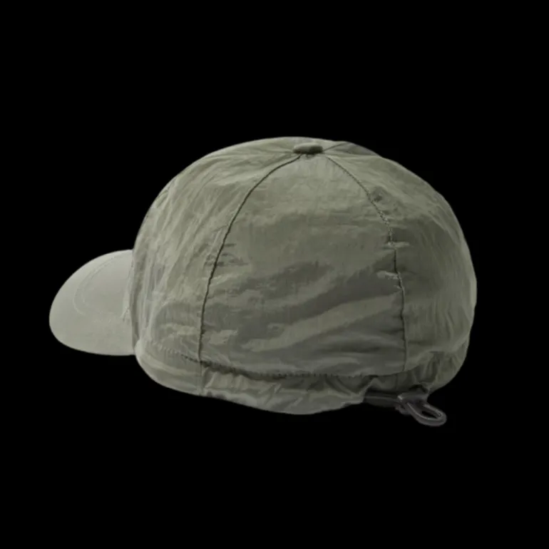 Casquette 6 panneaux nylon métal kaki logo cordon serrage