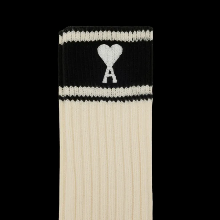 Chaussettes mi mollet coton mélangé bicolore écru noir cœur