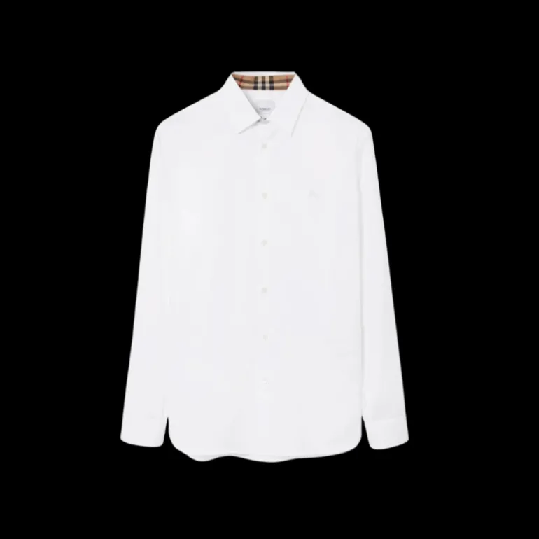 Chemise en coton stretch, ornée du motif du chevalier équestre brodé. Coupe slim, le modèle est doublé de Burberry Check au niveau du col et des poignets.