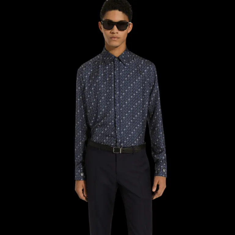 CHEMISE COUPE MARTINI EN SOIE AVEC IMPRIMÉ CRAVATE