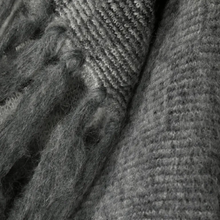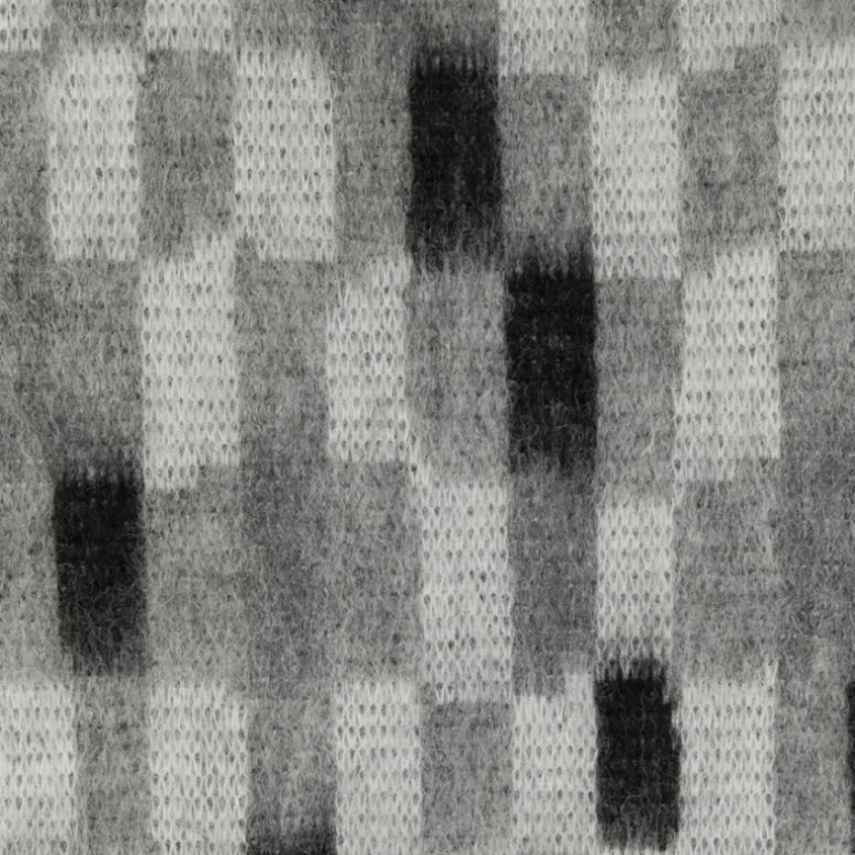 Echarpe laine mohair alpaga damier gris noir Franges