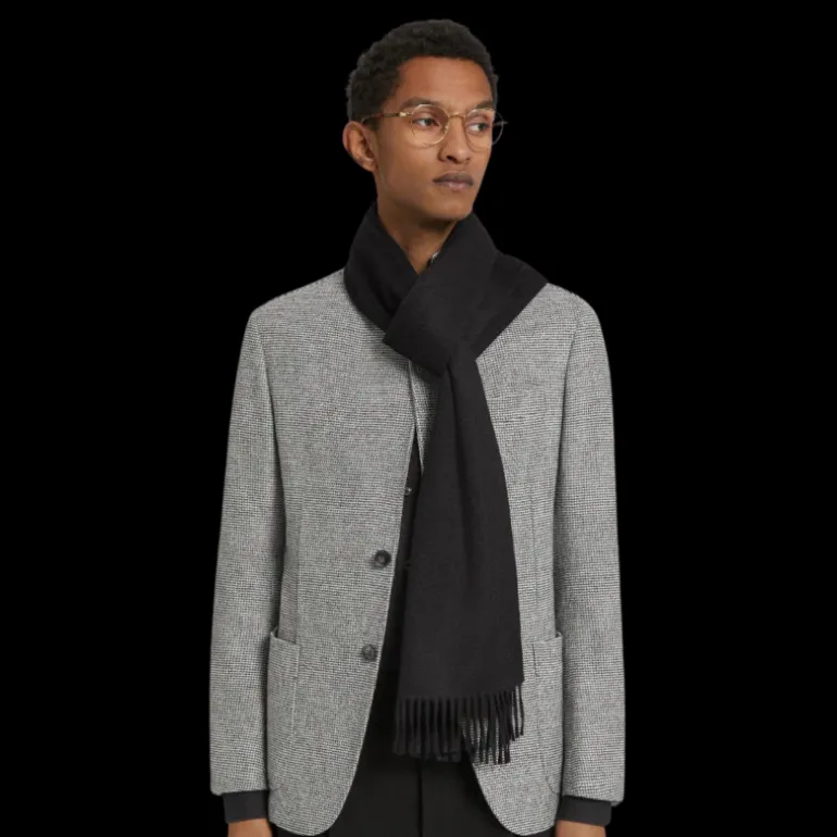 Echarpe Cachemire noir franges