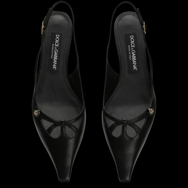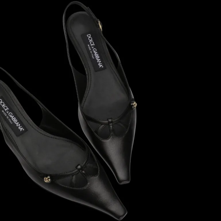 Escarpins Slingback à bride arrière cuir nappa noir logo DG doré