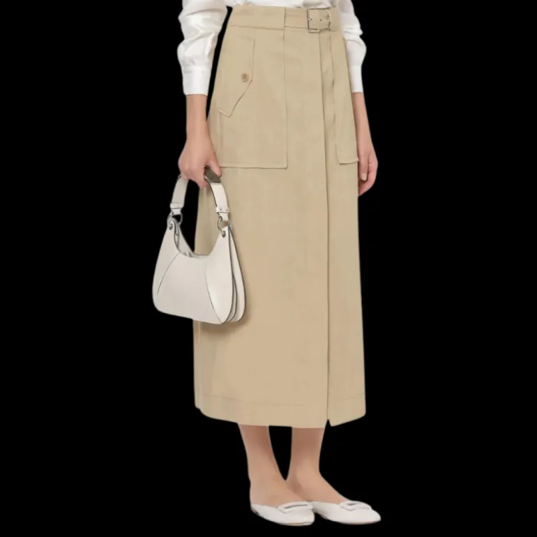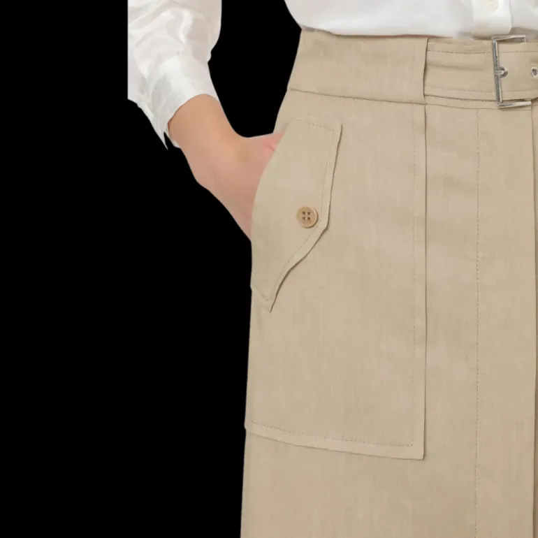 Jupe droite taille haute poche cargo viscose lin beige boucle