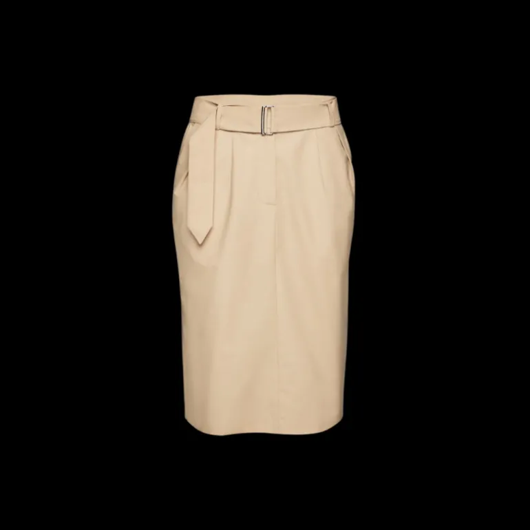 Une jupe midi classique avec une taille ceinturée, confectionnée en coton pour un look intemporel qui se marie bien avec divers hauts.
