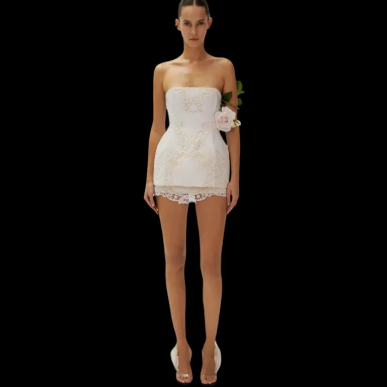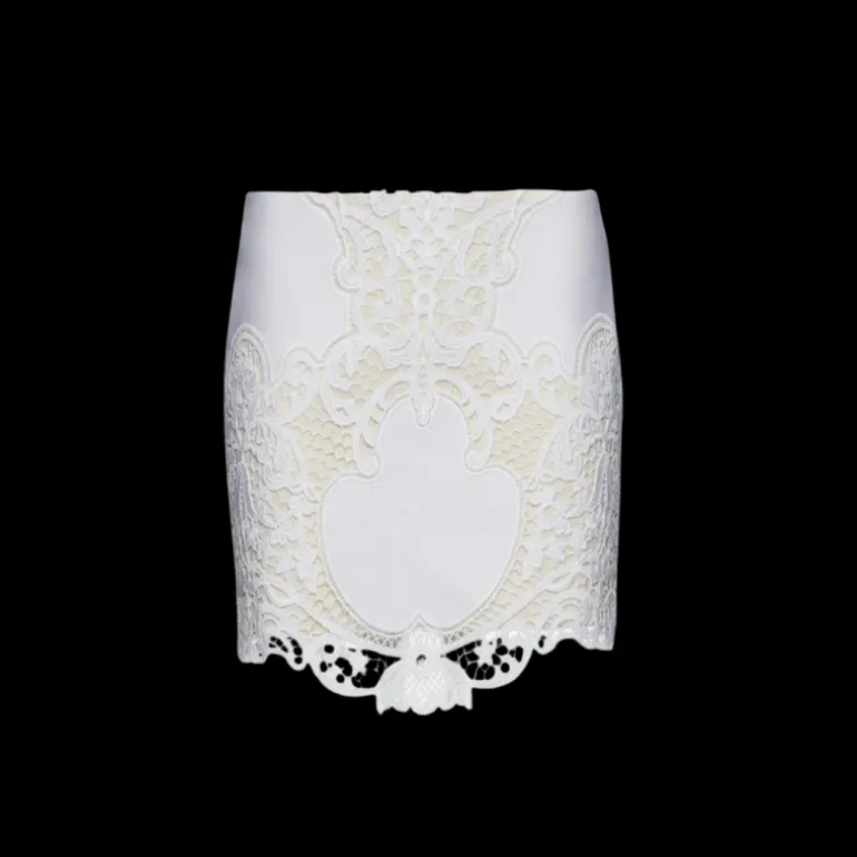 Une mini-jupe super courte en dentelle brodée d’inspiration slave avec une sous-couche en coton.