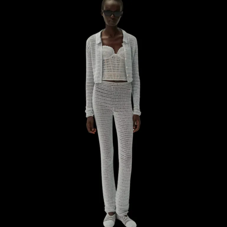 Une veste courte en crochet faite à la main avec un col et une fermeture à boutons tricotés, cette pièce peut être portée seule comme un haut ou comme un haussement d’épaules. Associez-le à un haut corset et un pantalon en crochet pour un total look.
