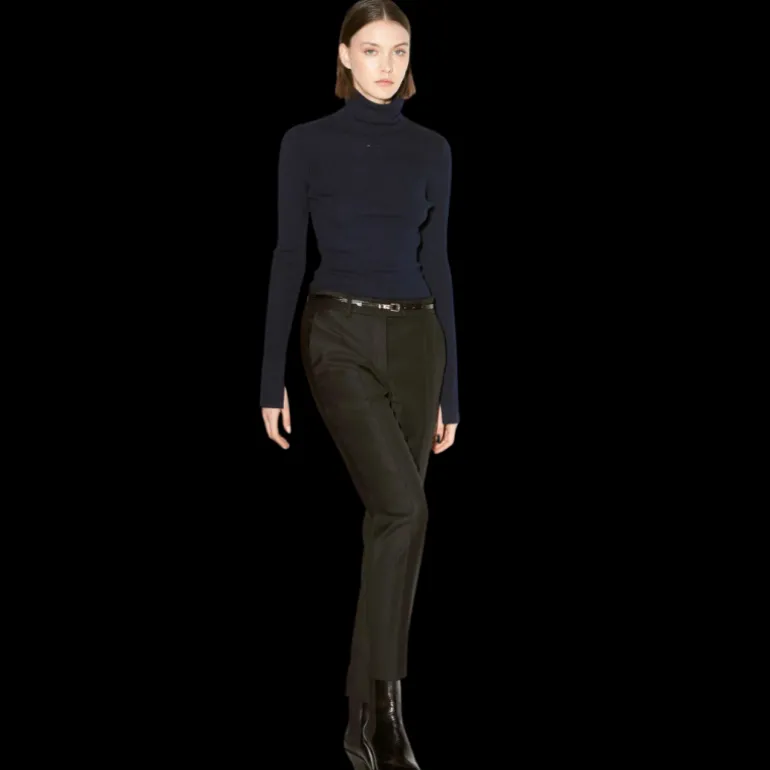Notre iconique pantalon de costume Roxy à la coupe droite de longueur 7/8 est proposé pour la saison automne-hiver dans une gabardine de laine et cachemire douce au porté chaud et confortable. Ses finitions soignées comme ses poches arrière passepoilées, ses poches avant à l’italienne, sa patte de boutonnage cachée et ses passants à la taille témoignent du savoir-faire tailleur des ateliers de notre maison parisienne. Porté avec une paire de bottines, ce pantalon de costume femme intemporel élance la jambe. Associez ce pantalon tailleur noir à un pull en maille fine en plein hiver ou à une chemise en satin de soie portée seule ou sous la veste de costume assortie.