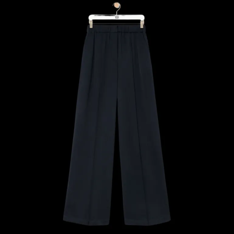 Pantalon de pyjama large droit soie satin bleu nuit