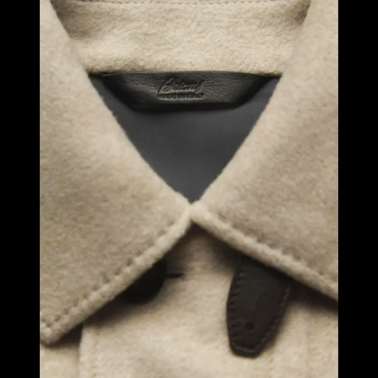Parka cachemire beige doublé col chemise patte cuir