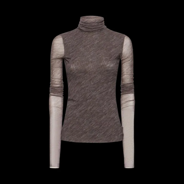 Pull-over col roulé tulle stretch gris