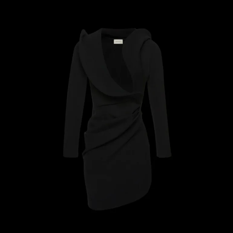 Robe mini sculpturale col v manches longues laine noir