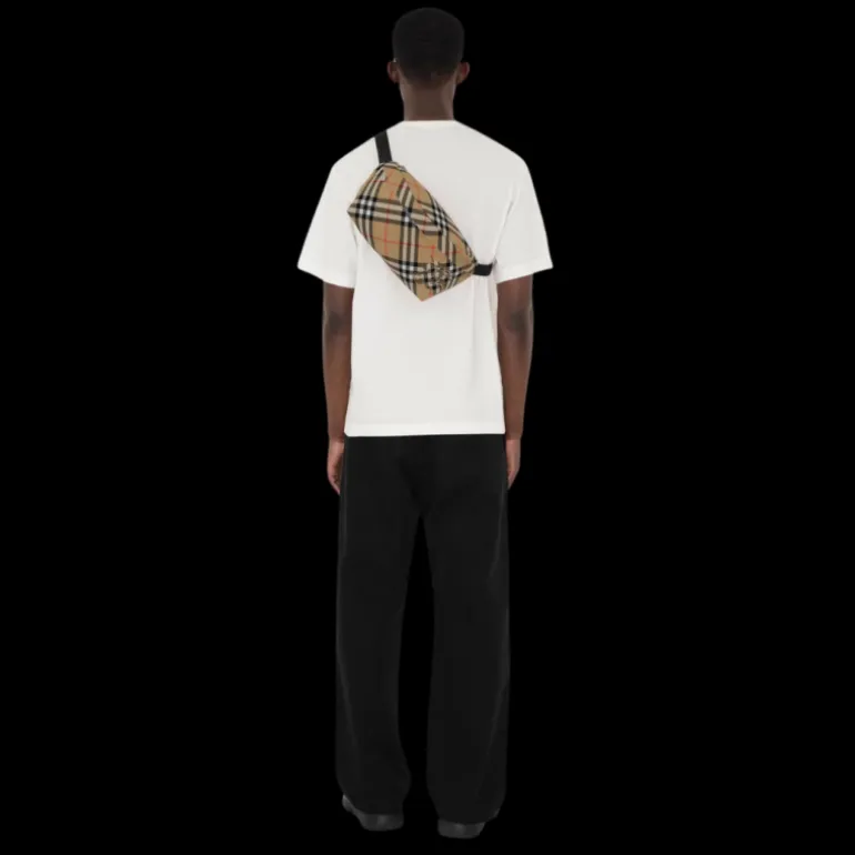 Sac ceinture tissé en tissu Burberry Check avec doublure assortie et application du motif Equestrian Knight. Ce modèle est doté de tirettes de fermeture éclair en B et peut être porté en bandoulière grâce à la bandoulière réglable. Il fait partie des classiques Burberry, des basiques de garde-robe avec une touche Burberry unique.