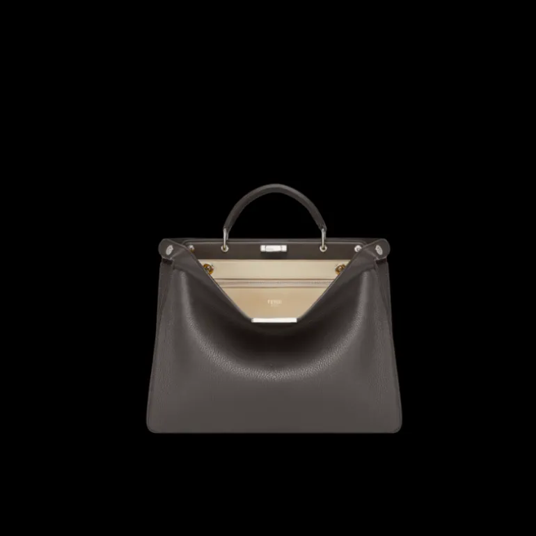Sac Peekaboo ISeeU, moyen modèle, réalisé en cuir Cuoio Romano marron foncé avec intérieur contrasté jaune.