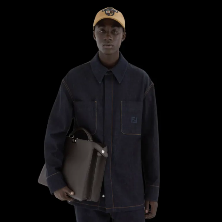Intérieur composé de deux compartiments séparés par une paroi rigide et doté du fermoir-tourniquet emblématique de la marque sur le devant et d’une fermeture zippée au dos. La poche intérieure amovible présente un côté en cuir blanc lait et l’autre en toile FF marron. Garnitures en métal finition palladium.