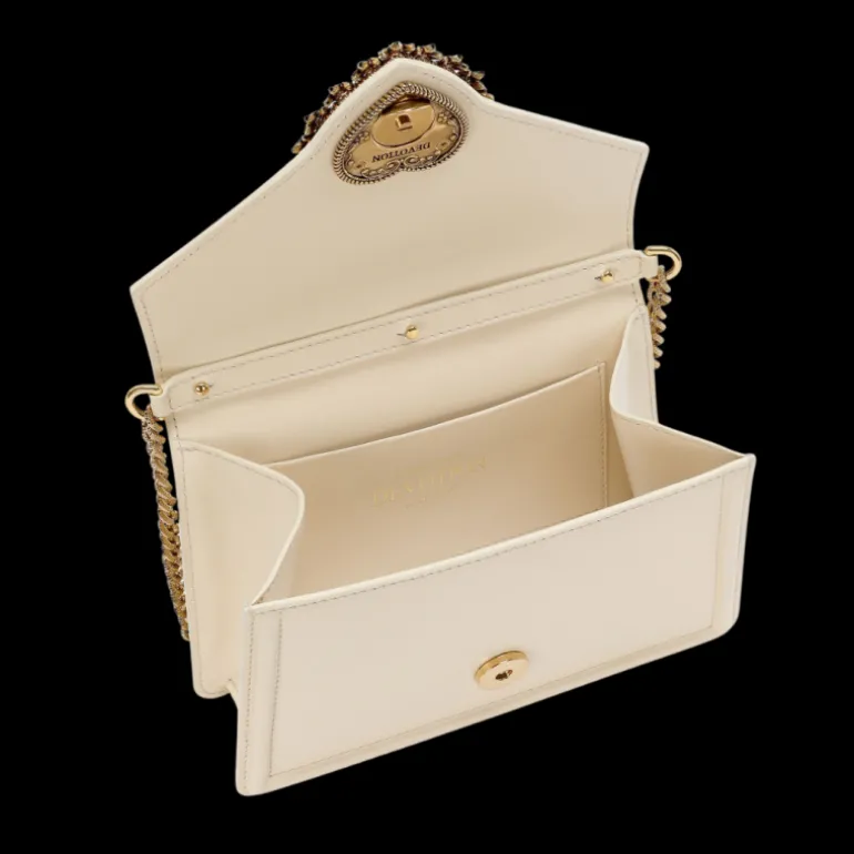Ce petit sac Devotion à poignée supérieure est réalisé en cuir de veau. Féminin et polyvalent, il se distingue par le fermoir cœur bijou exclusif et la bandoulière inspirée des techniques des joailliers de haute qualité.