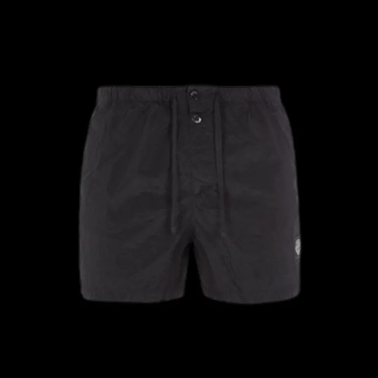 Short de bain nylon noir boutons cordon