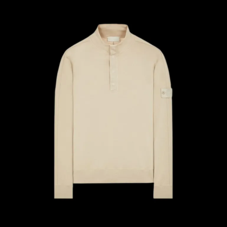 Les modèles Ghost, inspirés du concept camouflage, sont totalement monochromes. Le badge Stone Island est également décliné dans une version spéciale monochrome pour se fondre avec le vêtement. Sweat-shirt effet polo en coton biologique léger finement côtelé. Modèle teint en pièce.