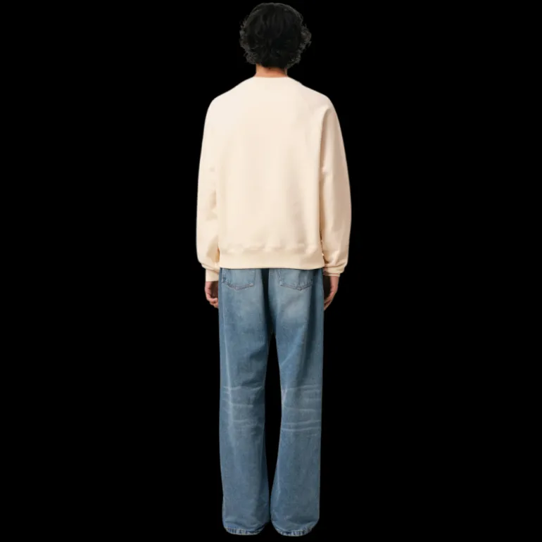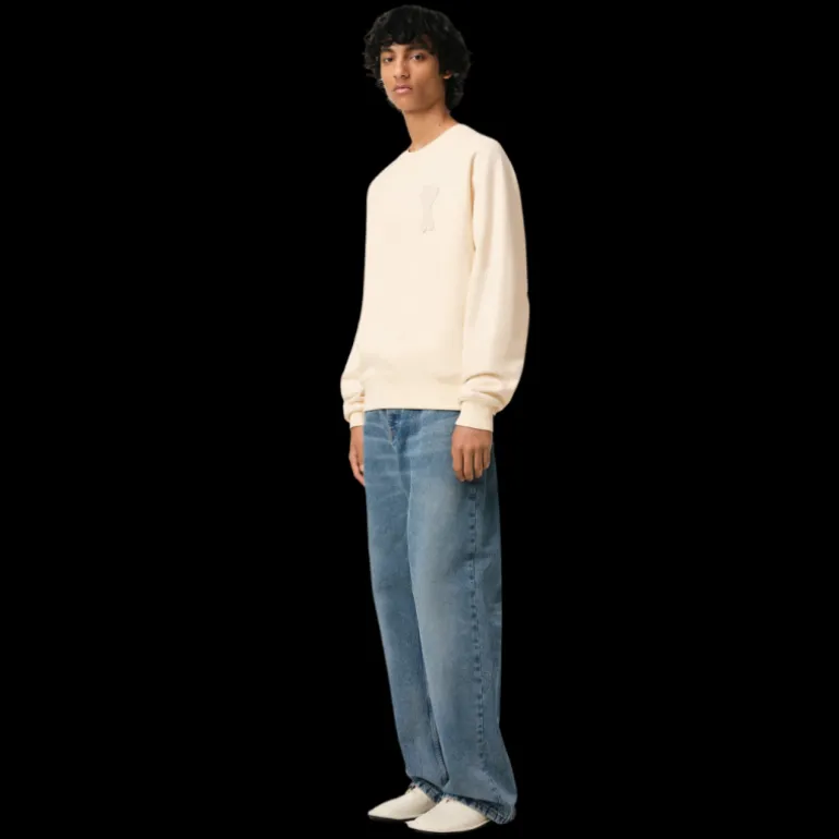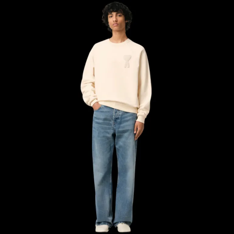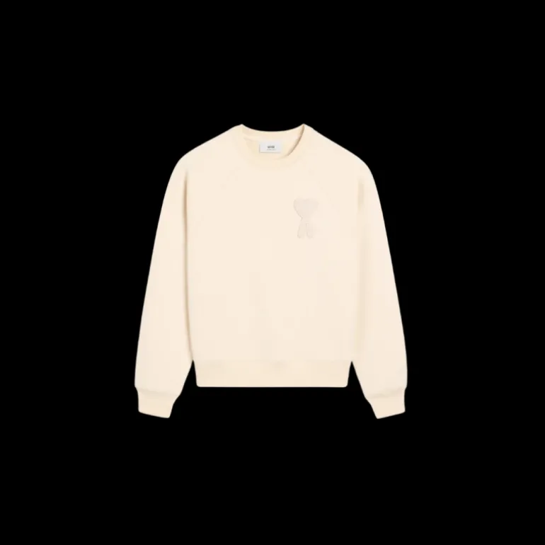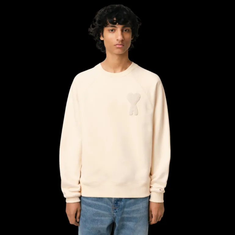 Sweatshirt col rond coton bio molleton épais écru patch cœur maille