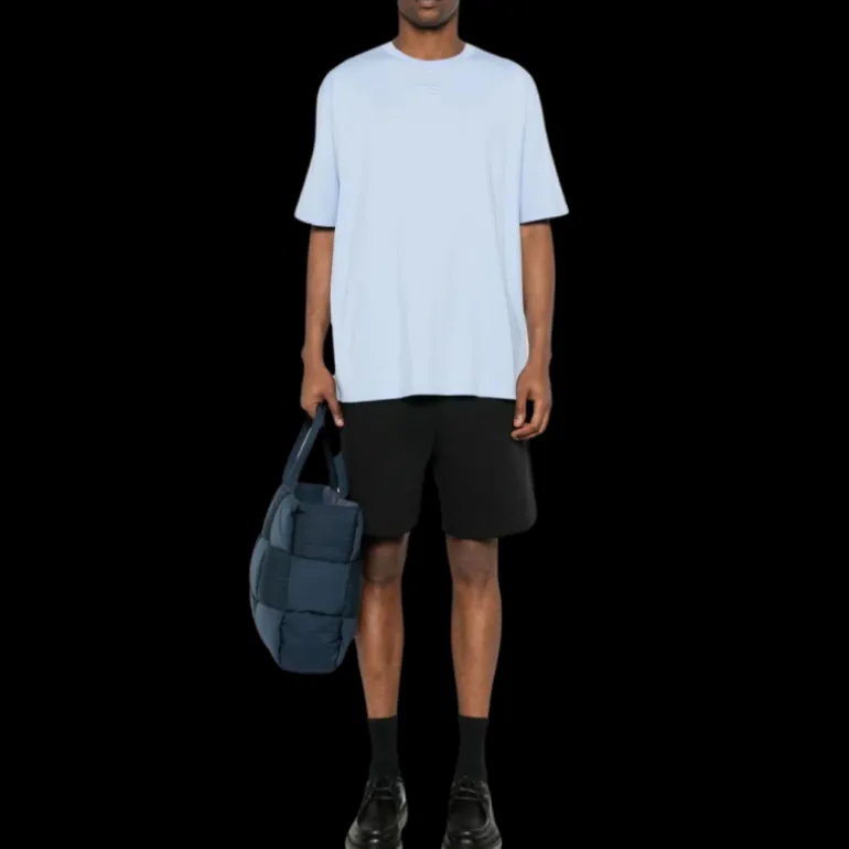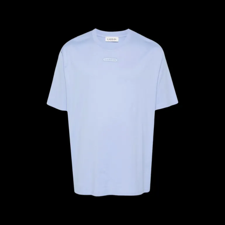 T-shirt col rond coton bleu ciel broderie petit logo écriture