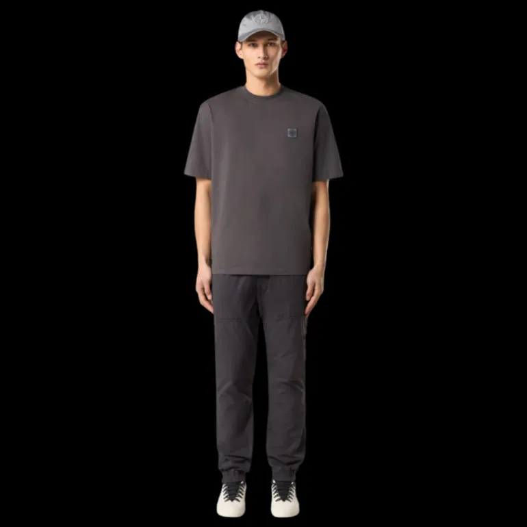 T-shirt col rond manche courte coton gris charbon écusson logo poitrine