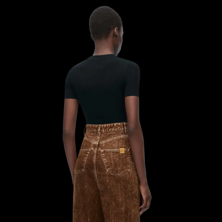 Haut court confectionné en jersey de coton côtelé stretch léger.