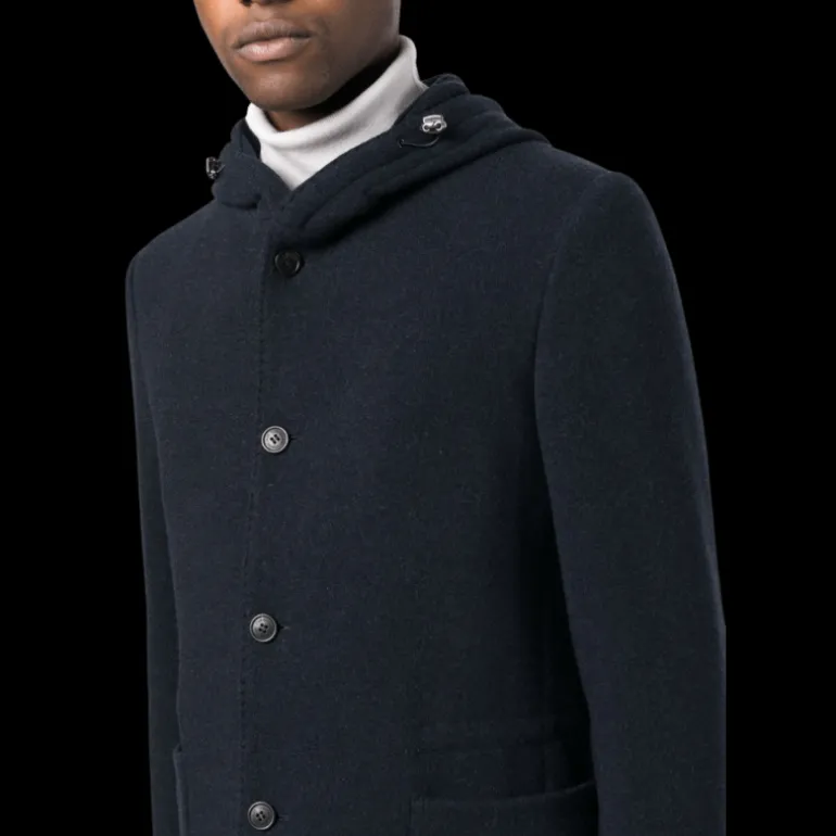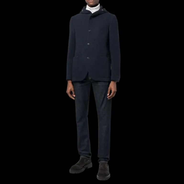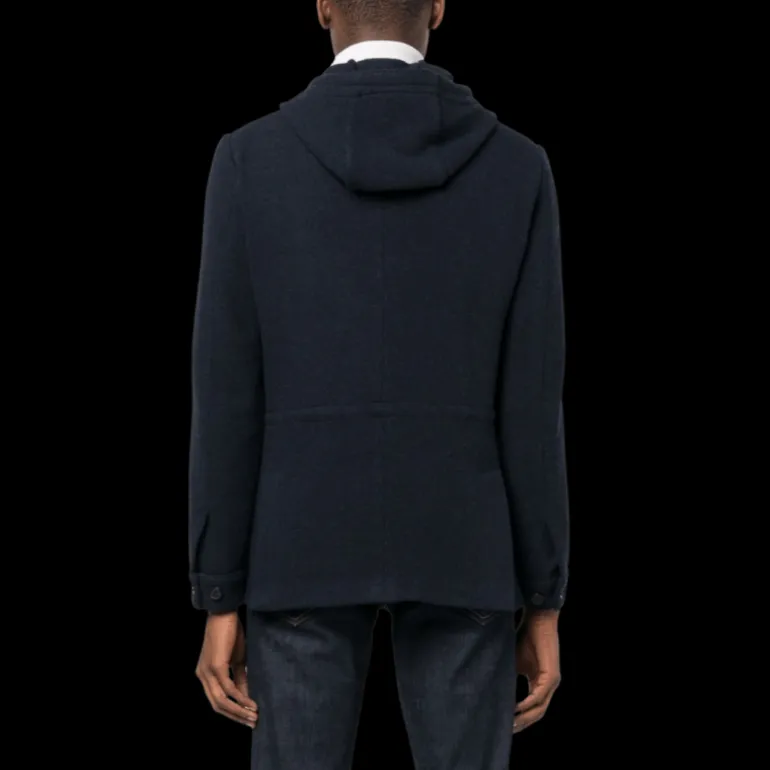 Veste droite capuche cachemire bleu marine
