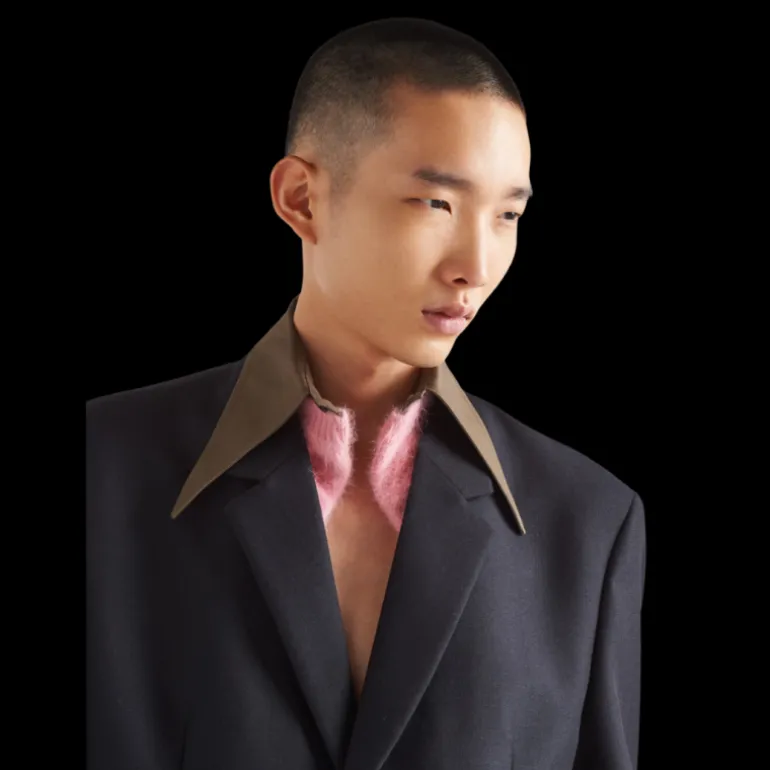 Cette veste est confectionnée en laine mohair douce. Elle affiche une coupe droite avec une fente d’aisance au dos, et dégage sophistication et caractère. Elle est ornée du logo triangulaire en tissu au dos.