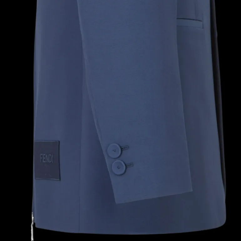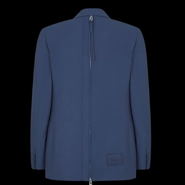Veste droite 2 boutons laine bleu zip dos