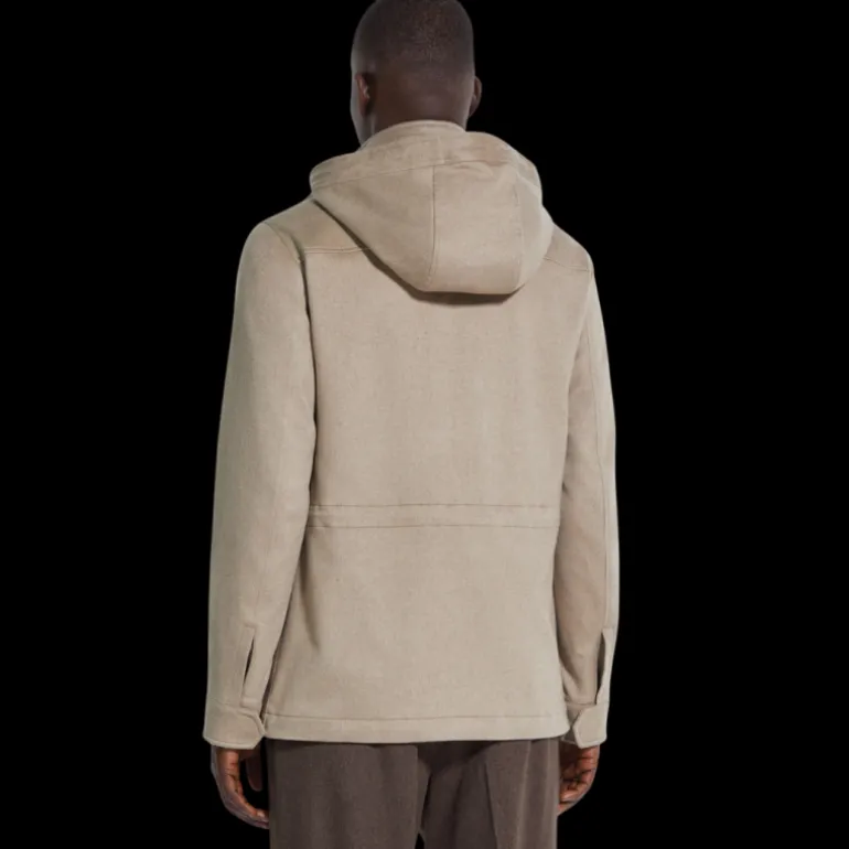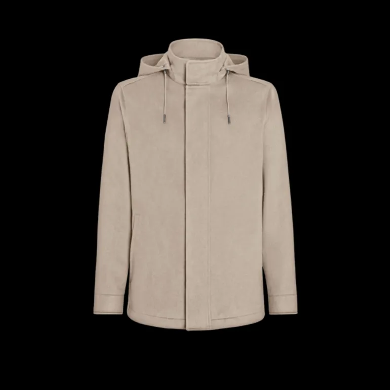 Veste droite Cima à capuche cachemire beige