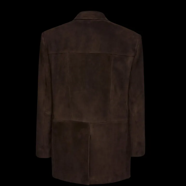 Un manteau en cuir oversize aux lignes classiques. Conçu de manière à rappeler les signatures de la marque : manteaux et blazers classiques.
